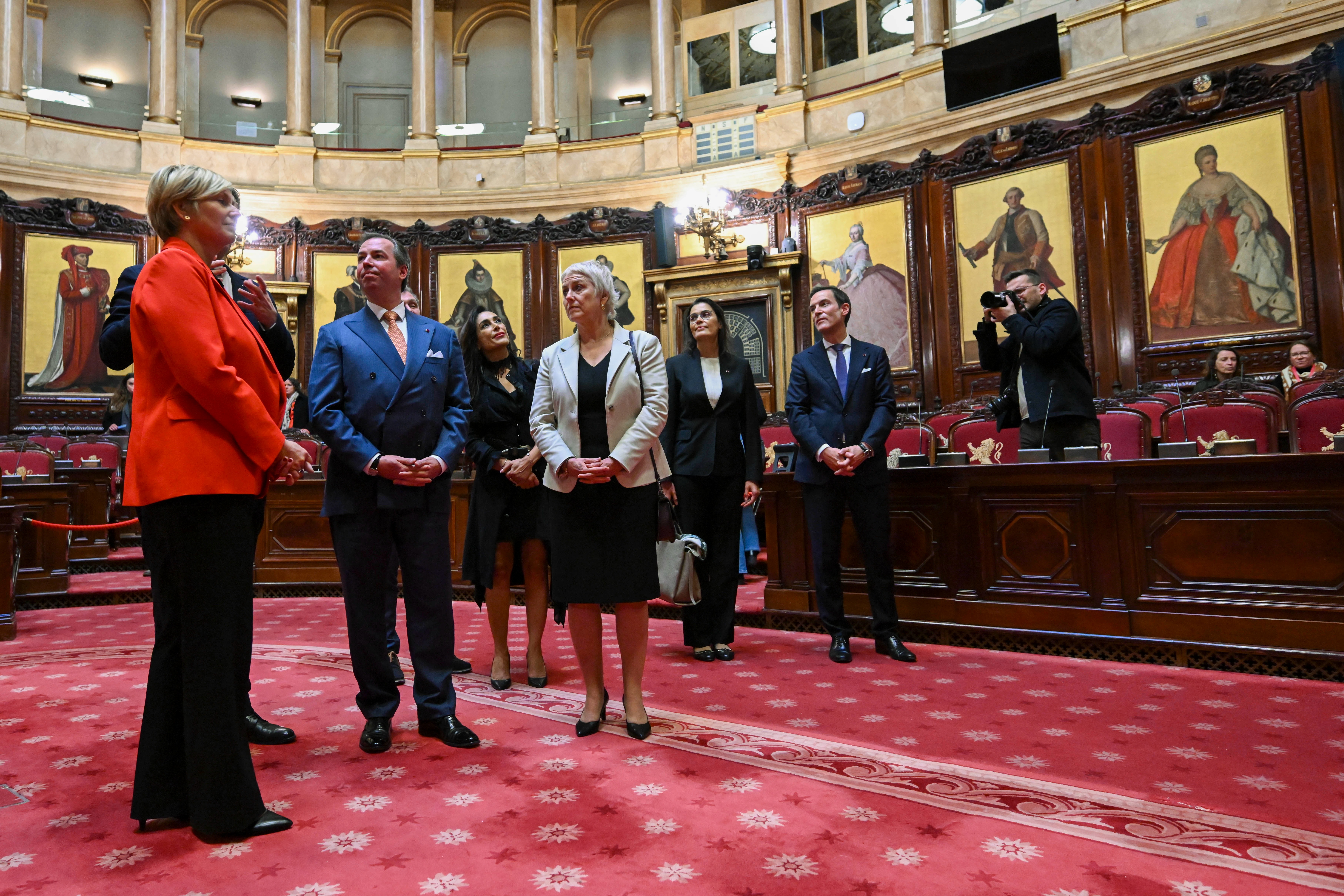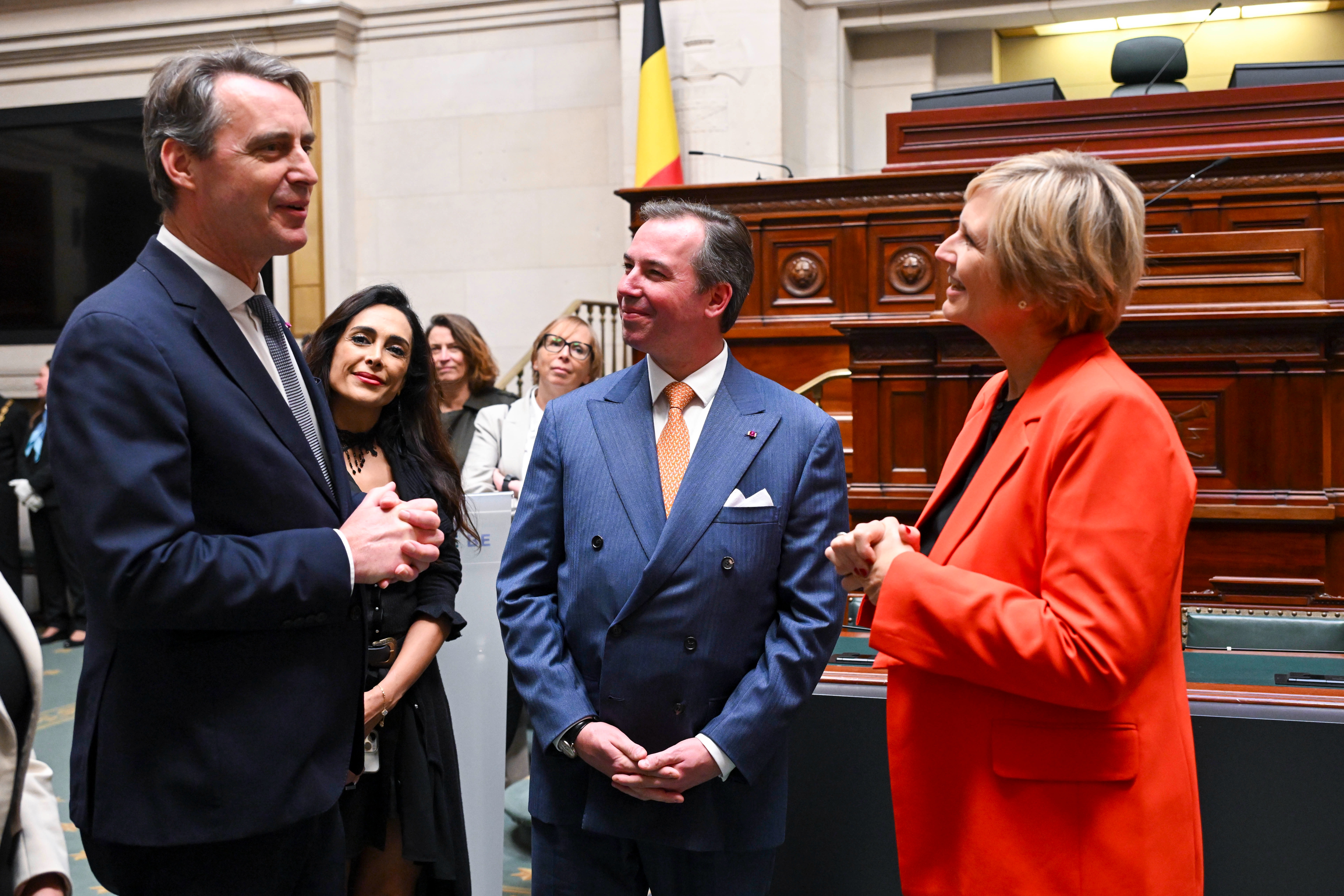S.A.R. le Grand-Duc se rend au palais de la Nation, siège du Parlement fédéral, où il est reçu par le président du Sénat, Vincent Blondel, pour une courte entrevue. Il visite ensuite l'hémicycle et signe le livre d'or.