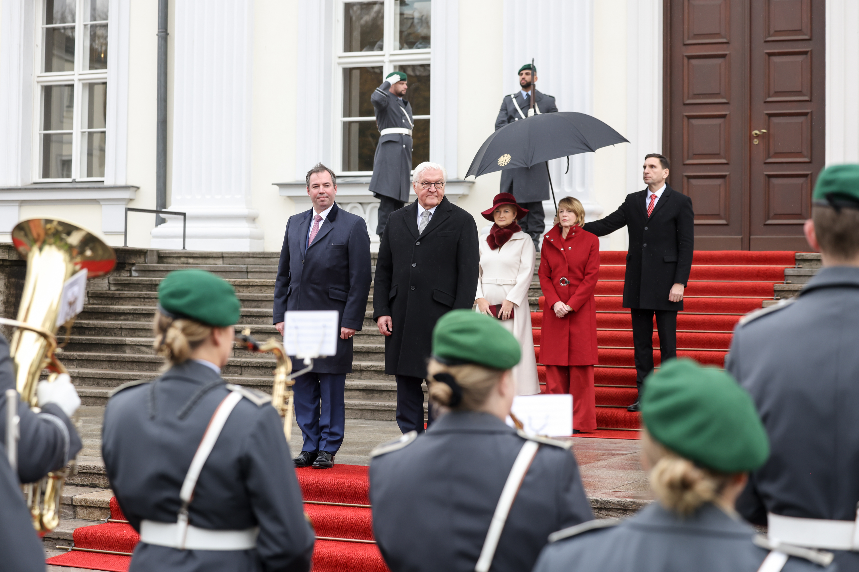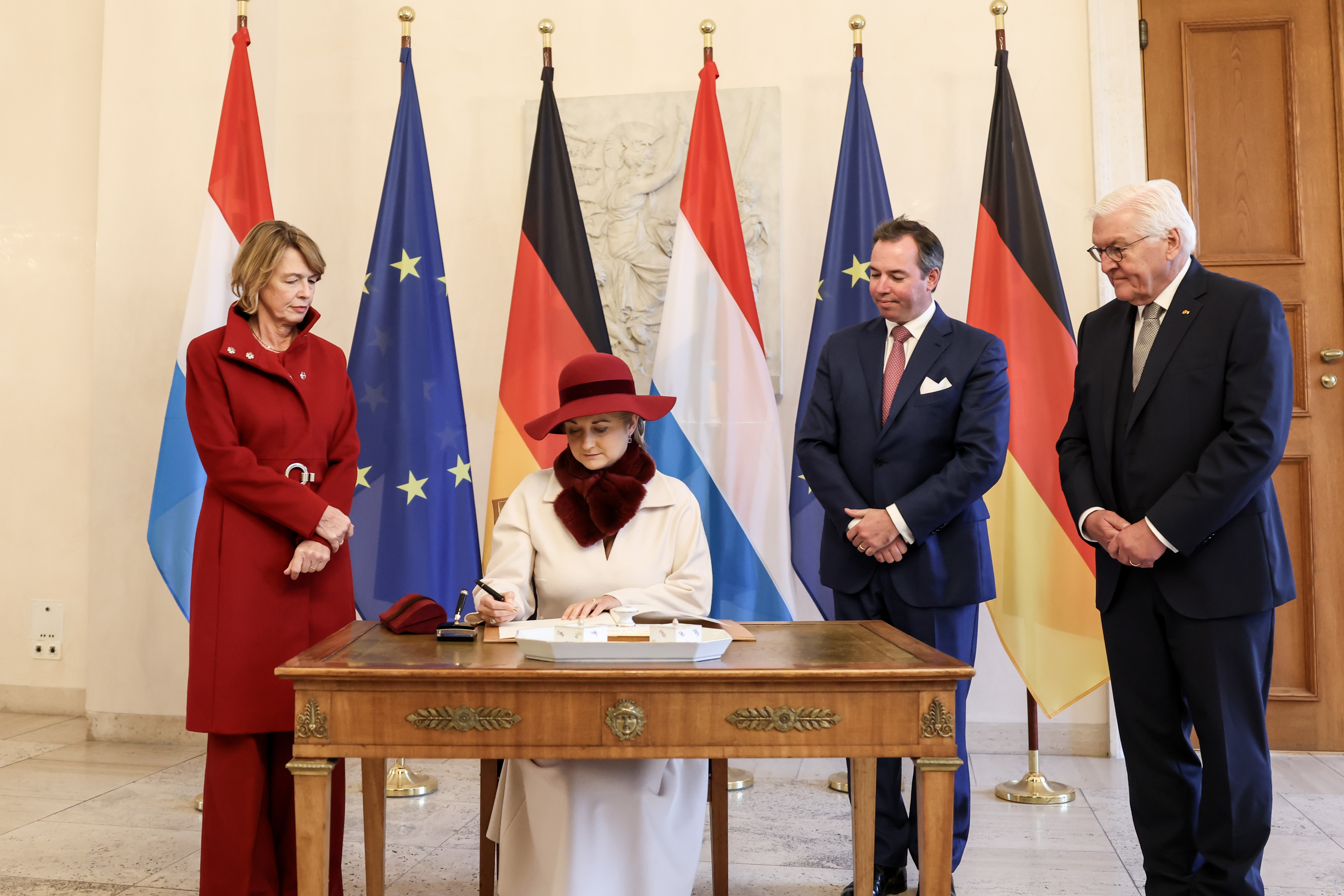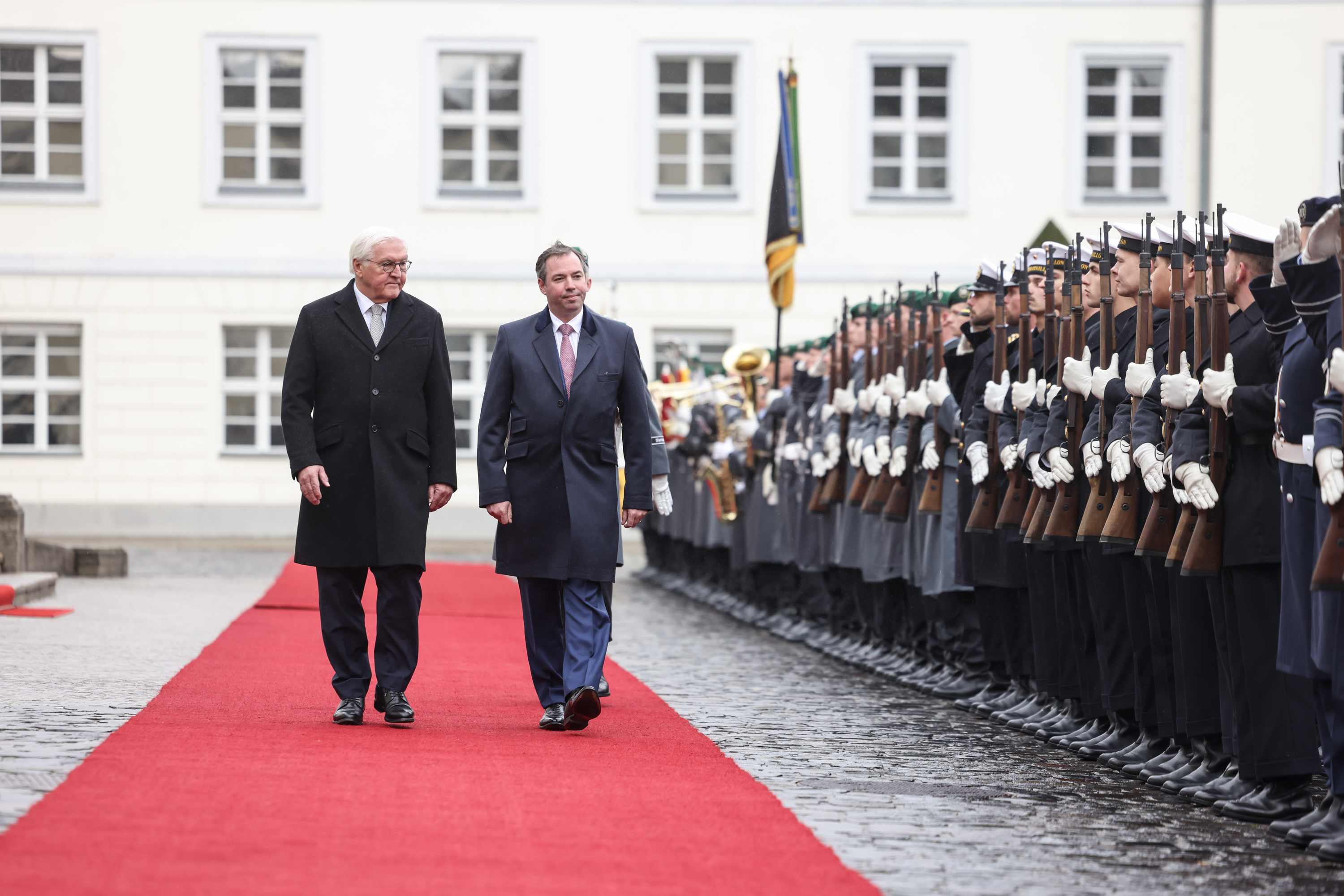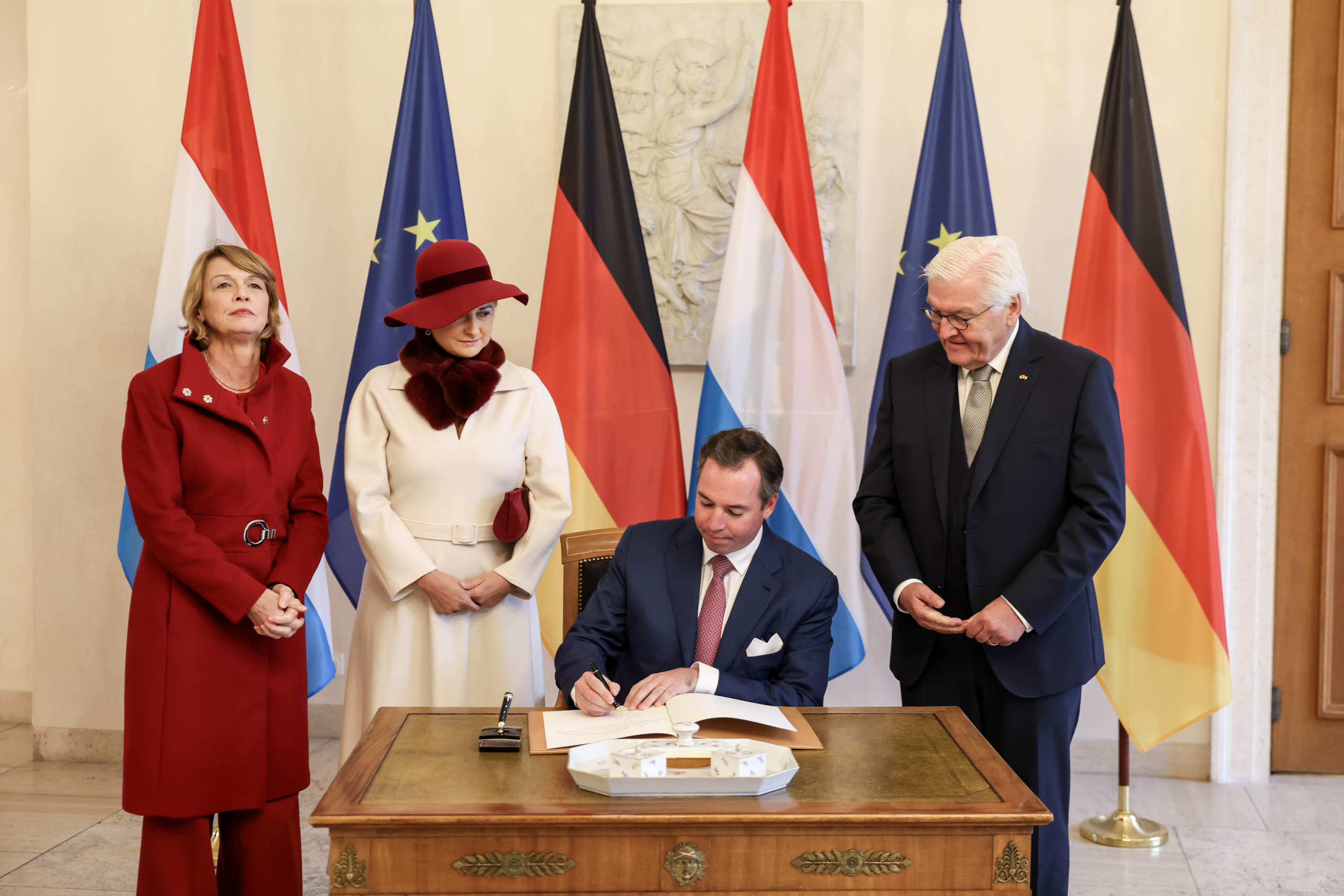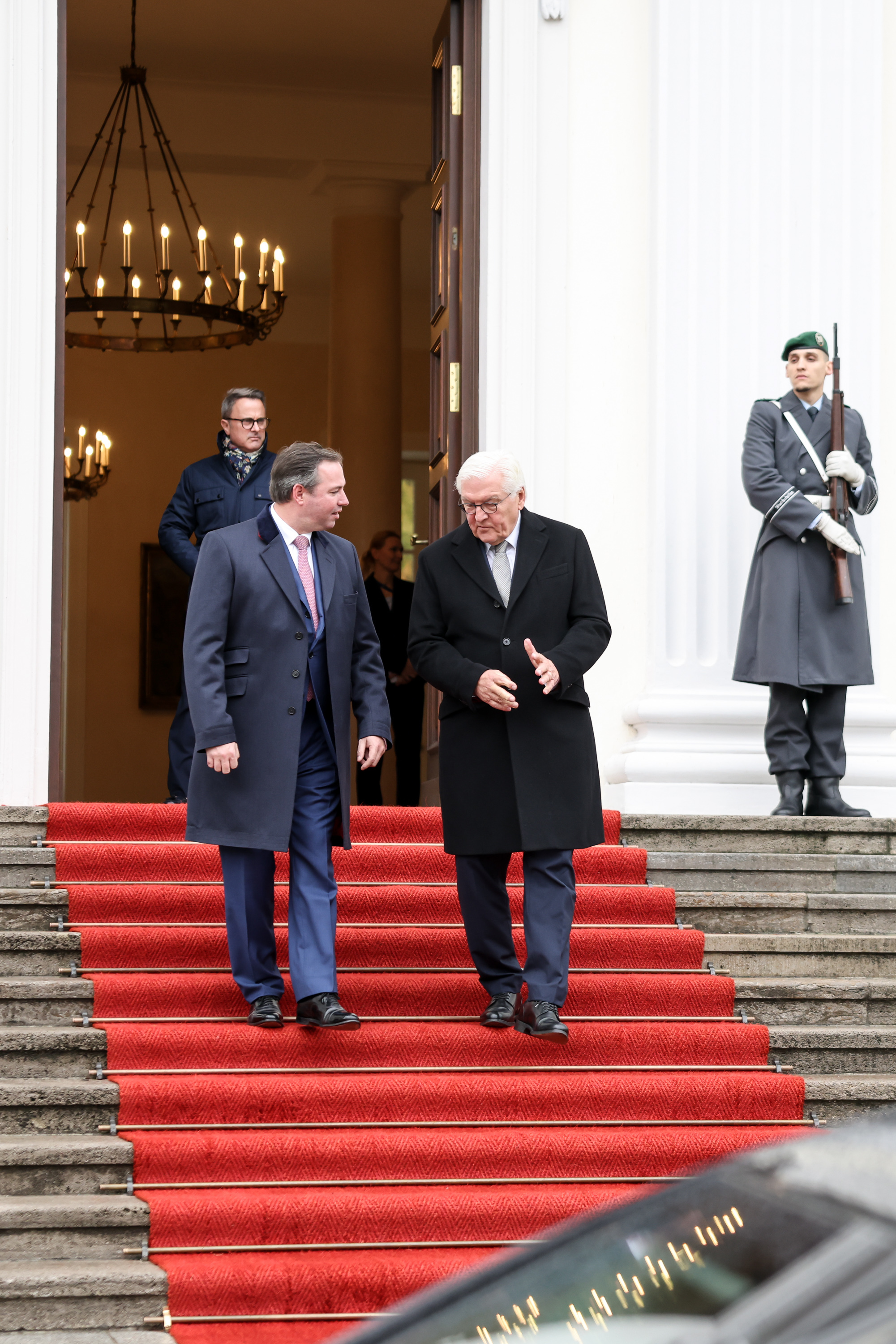 Le couple grand-ducal et sa délégation ont été accueillis officiellement le 27 octobre 2025 au château de Bellevue à Berlin, par le président de la République fédérale d'Allemagne, Frank-Walter Steinmeier, et son épouse, Elke Büdenbender.