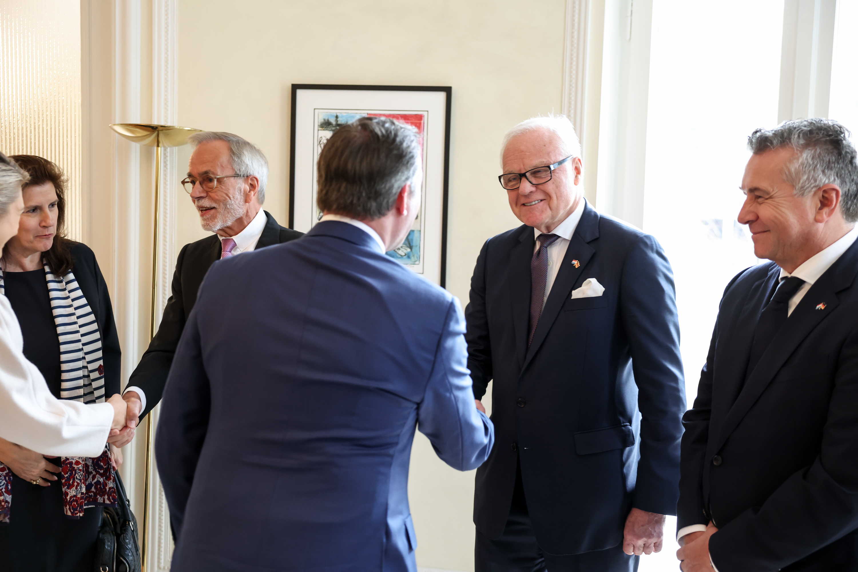 À l'issue de cette rencontre, LL.AA.RR. le Grand-Duc et la Grande-Duchesse et le ministre Xavier Bettel, ont pris part à un déjeuner offert dans la résidence de l'ambassadrice du Grand-Duché de Luxembourg à Berlin, en présence des consuls honoraires du Luxembourg en République fédérale d'Allemagne. Ce moment convivial a permis de saluer leur engagement en faveur du Grand-Duché.